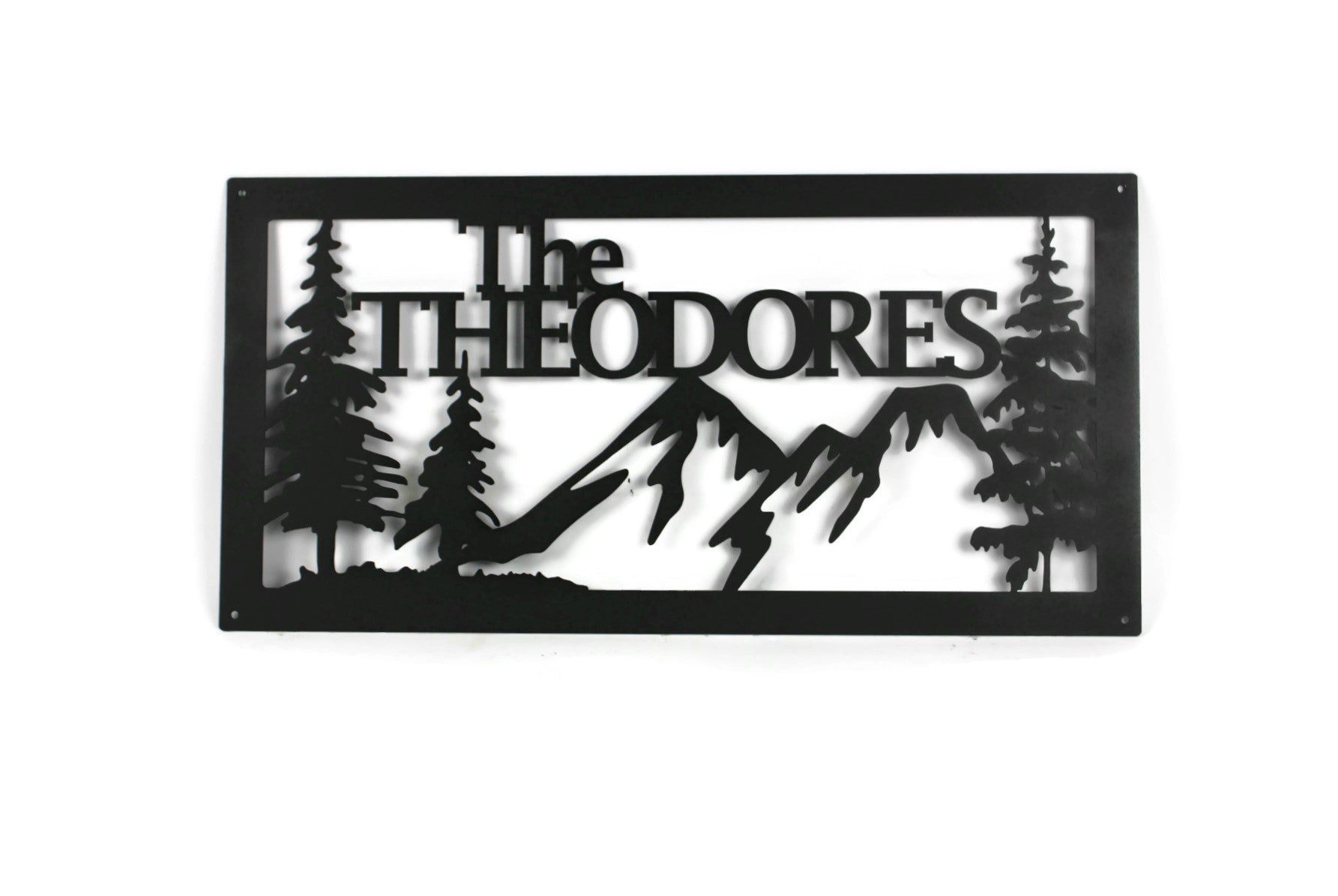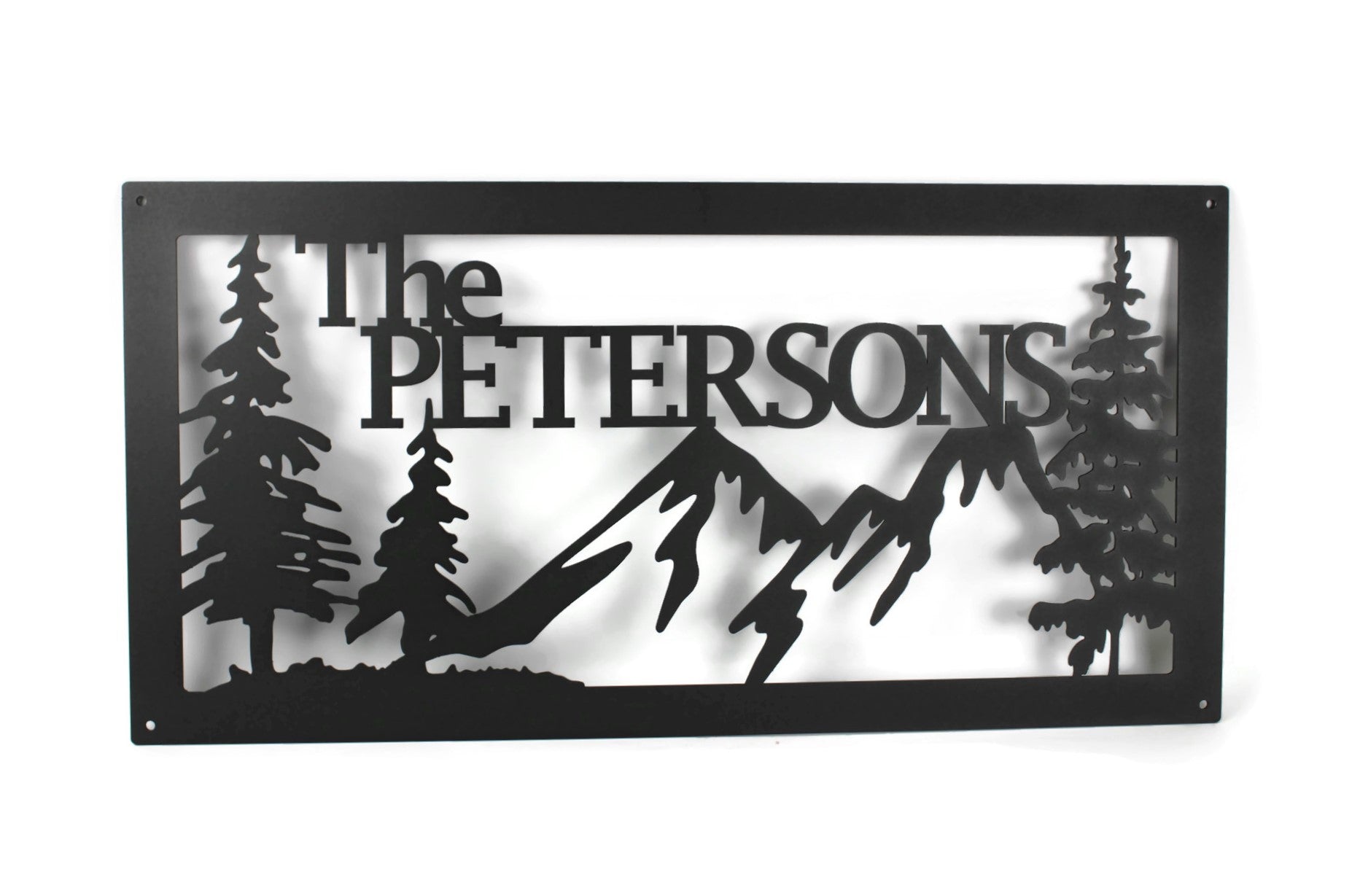 Family Name Metal Mountain Forest Cabin Sign 23 to 32 Inches Wide